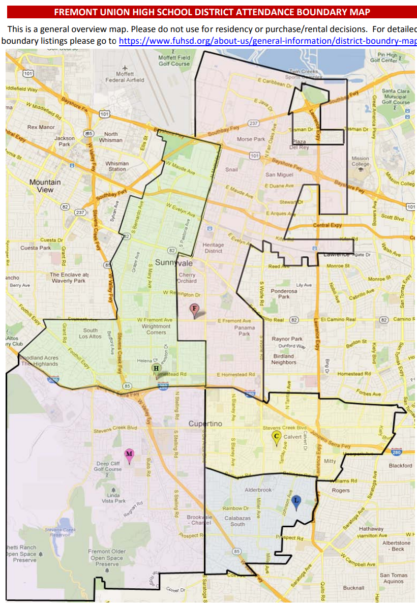 고등학교의 경우 Fremont Union High School District 라는 고등학교 학군이 따로 존재한다.