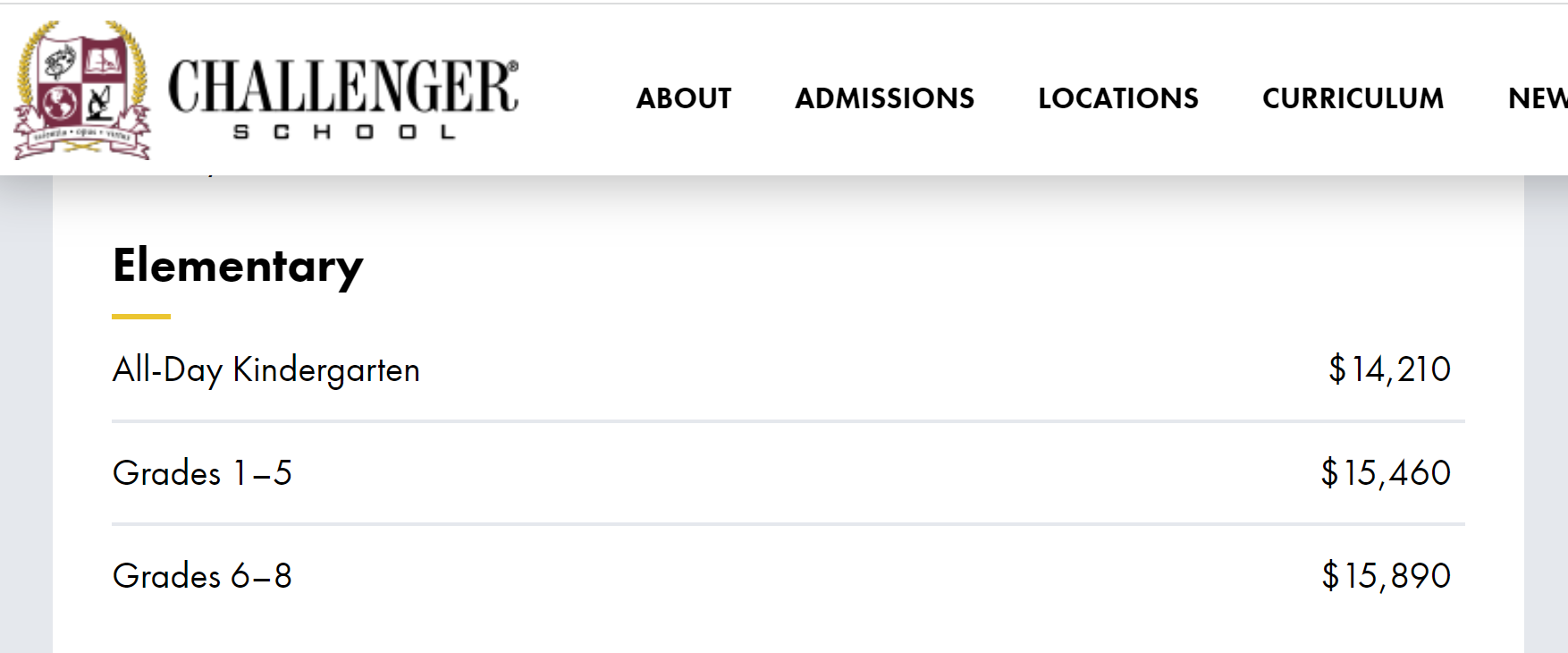 이에 비해 사립 학교는 수업료(tuition)를 내야 한다. 수업료의 범위는 다양한데 고급 사립학교일수록 당연히 수업료가 높고 정말 최고급 사립학교는 대학 수업료보다 더 높다고 한다. 그 중에 CA와 TX 두 곳 모두에서 들어본 유명한 사립학교로 Challenger School이 있다. 학교 홈페이지에 가면 어디 어디에 학교가 있는지 그리고 수업료가 어느 정도가 되는지 다 찾아 볼 수 있다. 중학교 과정, 즉 6학년에서 8학년 과정의 경우 CA에 위치한 학교는 $23,500/year, TX에 위치한 학교는 $15,890/year 이다. 이런 차이는 주에 따른 물가의 차이이기도 하다.