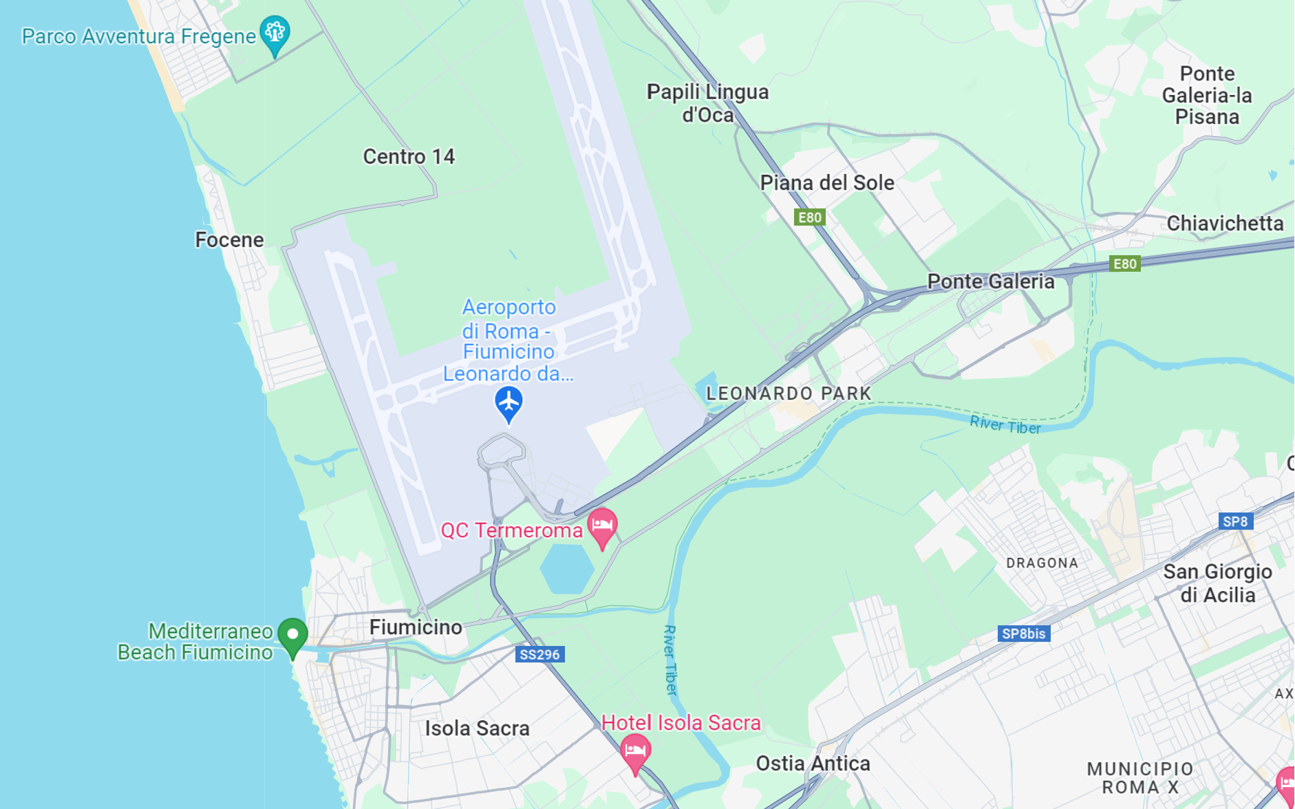 이탈리아/로마, 그리고 르네상스를 생각하면 떠올릴 수 밖에 없는 한 사람 Leonardo da Vinci. 그래서 로마 공항도 그 이름을 따서 Leonardo da Vinci Airport라고 하지만 공식적인 이름은 Fiumicino International Airport이다. 공항은 로마에서 티베레 강이 흘러와 바다로 이어지는 지점에 있는데 그 지역 이름이 Fiumicino이다. 한국으로 치자면 인천 공항과 같은 상황이랄까. 그래서 공항 약자도 FCO이다. 이 공항의 구글 지도를 살펴 보면 바로 길 건너편에 육각형의 호수가 보인다. 너무나 완벽한 육각형이라 어, 이게 뭐지라는 생각이 들 정도인데 정말 정육각형이다. 왜냐하면 이 육각형이 배를 대던 무역항 항구, 클라우디아 황제에 의해 만들어진 인공 항구이기 때문이다.