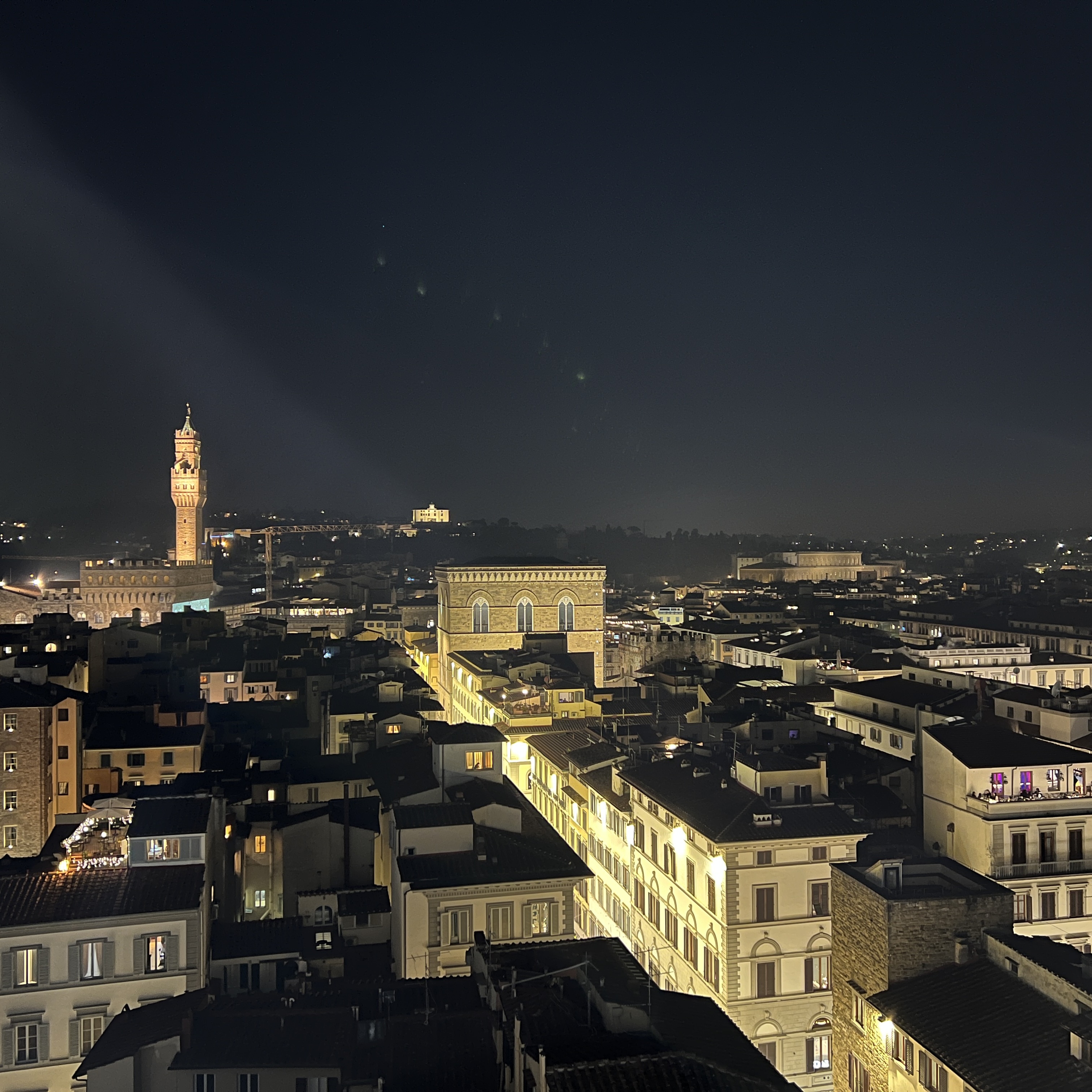 언제나 그렇듯이 이런 곳에 올라오면 보상이 따르기 마련이다. 그 보상은 이런 멋진 야경이다. 멀리 내일 방문하게 될 Palazzo Vecho가 보였고 그 너머에는 Palazzo Pitti, 그리고 Boboli Garden이 있을텐데 불행이도 이 두 곳은 피렌체에서 시간이 모자라 가보지는 못했다. 이렇게 못 가는 곳도 있어야 다음에 다시 와야지 하는 핑게가 생기기도 할 것 같다. 아, 물론 꼭 다시 와야지.