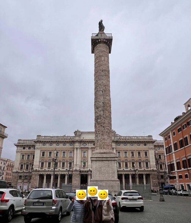 또 틀렸다. 점심을 먹으러 들어간 일식당에서 "트라야누스 원기둥"을 검색했을 때 "트라야누스 원기둥"은 포로 로마노 근처에 위치하고 있었고 이건 "마르쿠스 아우렐리우스 원기둥"이었다. 비록 마르쿠스 아우렐리우스 황제의 게르만족 전쟁을 기념하기 위해 만들어졌지만 "트라야누스 원기둥"의 내용과는 달리 그의 게르만족 전쟁 내용을 기록한 것이 아니라 마르쿠스 아우렐리우스 황제 시대의 일상 로마인들의 생활들과 그가 로마 시민들에게서 받은 존경이 장면들이 담겨 있다고 한다. 이 원기둥이 여기 있는지 몰랐던 무지에서 온 실수 하나.
