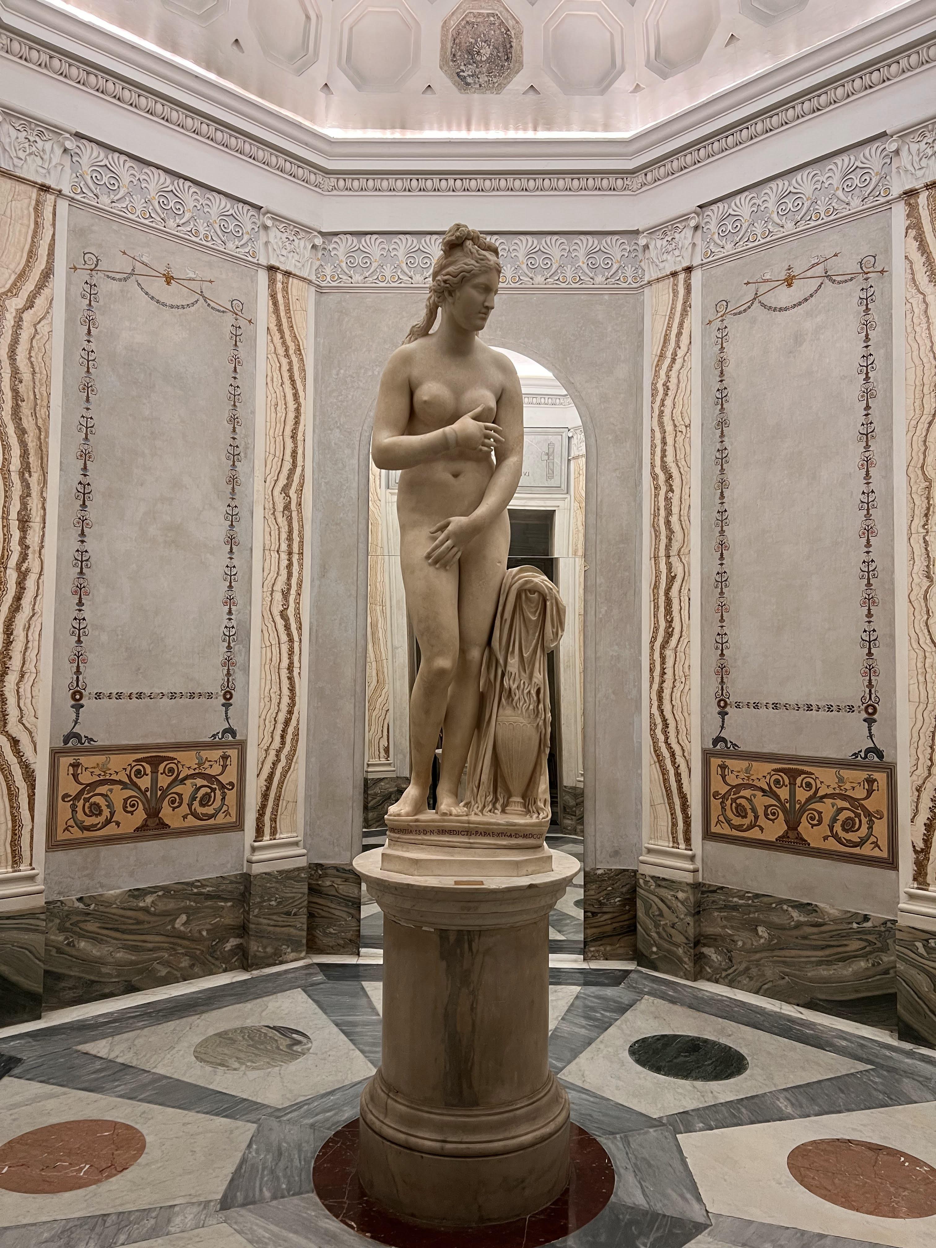 아주 긴 복도여서 끝까지 가지 않고 중간쯤에서 돌아 나오려는데 화장실 표시가 있어 그 긴 지하 복도를 끝까지 가게 되었다. 그 끝에 화장실이 있었는데 그 옆에는 위로 올라가는 계단이 있었다. 아무런 출입 금지 표지도 없고 그냥 평범한 계단이길래 궁금해서 올라가 봤다. 그랬더니 거기가 바로 누오보 궁전(Palazzo Nuovo)이었다. 카피톨리노 미술관은 두 궁전으로 이루어져 있는데 그 연결은 이 지하 통로로 되어 있었던 것이다. 그제서야 구글 리뷰에 카피톨리노 미술관에서 하루 종일 보낼 수 있다는 것이 무슨 뜻인지 알았다. 난 이제 겨우 미술관의 반만 본 것이었다!!!!