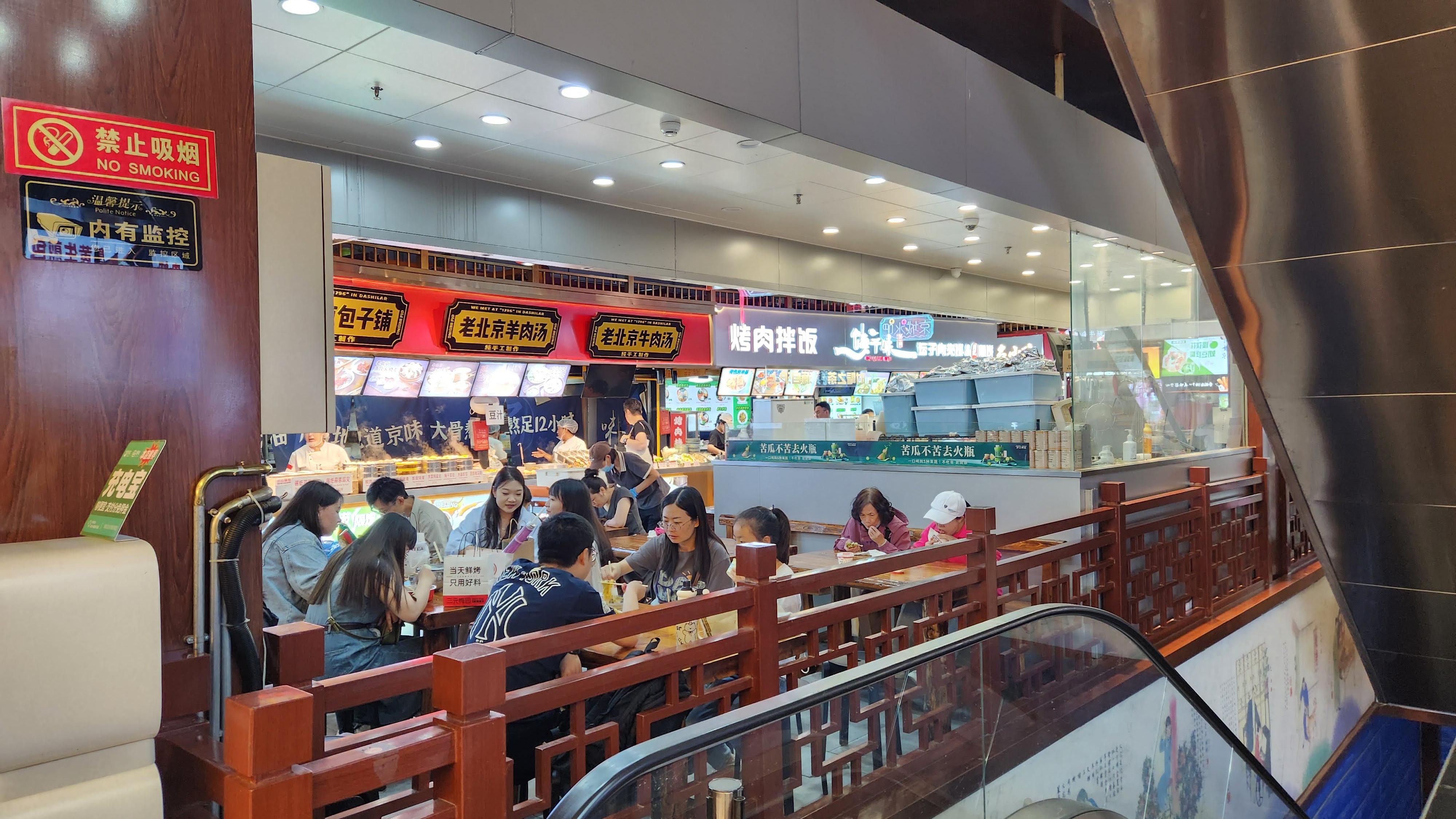 나는 어제 담뱃대 골목, 옌다이셰제(烟袋斜街)를 둘러 보았기 때문에 골목이 신기하지는 않았지만 어제 함께 하지 않았던 다른 동료 매니저들은 장소가 신기했나 보다. 특히나 미국 친구들은 이런 길거리 음식, street food는 동네 페스티발 같은데 가면 food truck이나 간단한 food stand tent 같은 곳에서나 볼 수 있기 때문에 많이 특이하게 느껴졌을 거라는 생각이 든다. 골목을 구경하면서 양고기 꼬치도 하나씩 사 들고 먹으며 구경했고 결국 한 건물 안으로 들어 갔는데 3층쯤 되는 건물 전체가 푸드 코트였다. 각자 조금씩 다른 음식들을 파는 가게들이 주변에 위치하고 있었고 2층으로 올라가니 한편에 좌석까지 갖춘 정식 식당도 있었다. 1층 가게 중에는 탕후루를 파는 집도 있었는데 과일과 더불어, 전갈 등을 포함한 곤충류 탕후루도 있었다. 모두들 신기해 했지만 그 누구도 먹어볼 생각을 하지는 않았다.