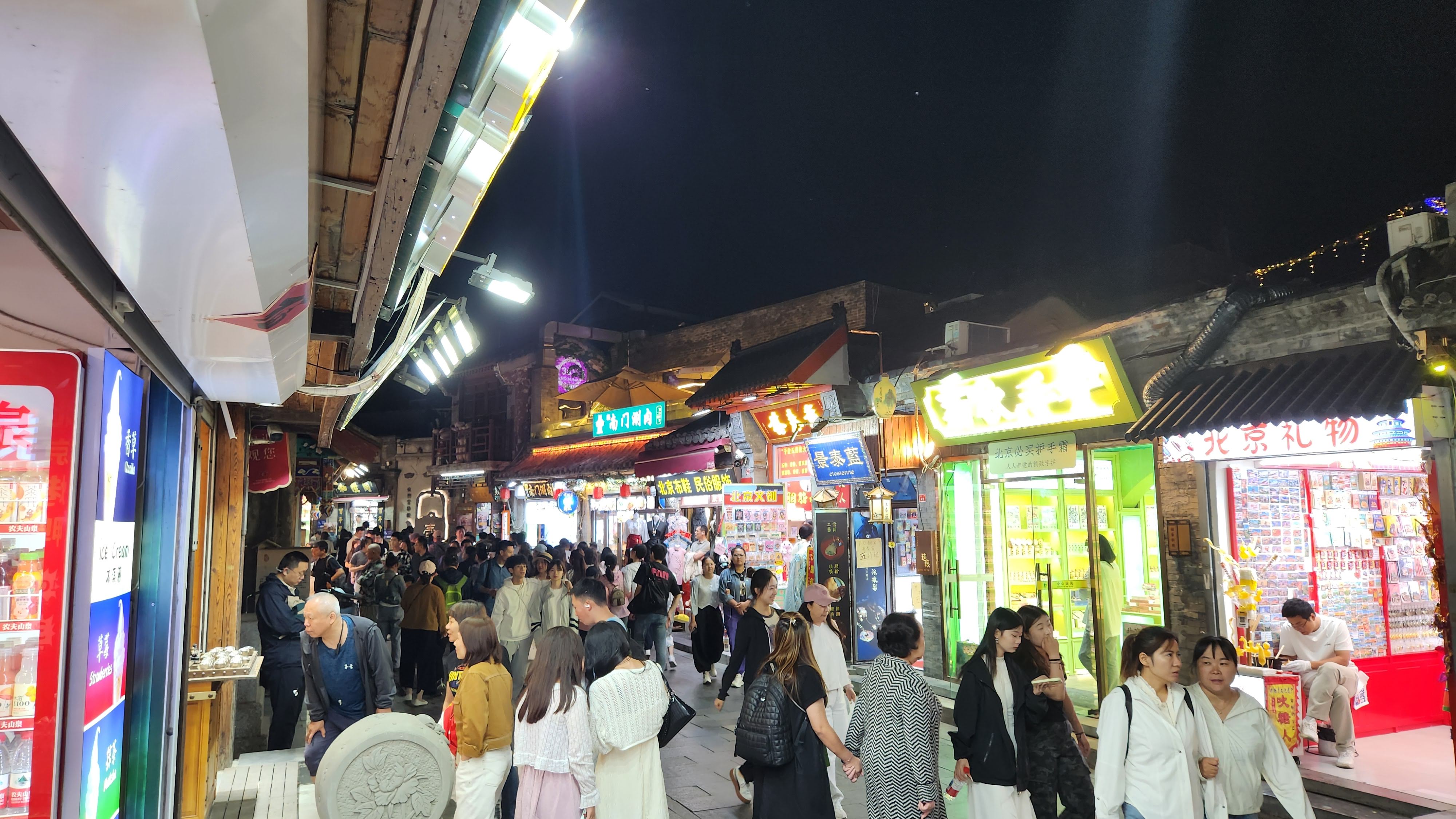 베이징은 생각보다 계획도시라서 대부분의 길이 남북동서로 방향으로 길이 나 있는데 이 골목은 특이하게 비스듬하게 그리고 불규칙한 각도로 이어진 독특한 골목이다. 거리 좌우에는 정말 온갖 종류의 상점들이 있었는데 간단한 먹을거리는 파는 가게들이 제일 많았고 인사동 골목처럼 장신구, 선물용품, 기념품들을 파는 가게들도 꽤나 눈에 띄었다. 내 매니저가 호숫가에 간다고 했던 건 이 골목들 구역 너머에 작은 연못이 있고 거기에서 보트도 빌려 탈 수 있다고 한다. 토요일 저녁이라 데이트 나온 연인들이나 친구들과 놀러 나온 이들로 골목 여기 저기는 꽤나 붐볐고 오래만에 사람 사는 듯한 복작복작함을 느낄 수 있었다. 이런 것들은 한중일 같은 곳에나 느낄 수 있지 미국에서는 별로 느껴 보지 못한 분위기라고 할 것 같다. 아무래도 미국은 다 넓직넓직해서 이런 좁은 공간에 사람들이 복작복작한 경우가 별로 없기 때문이다.