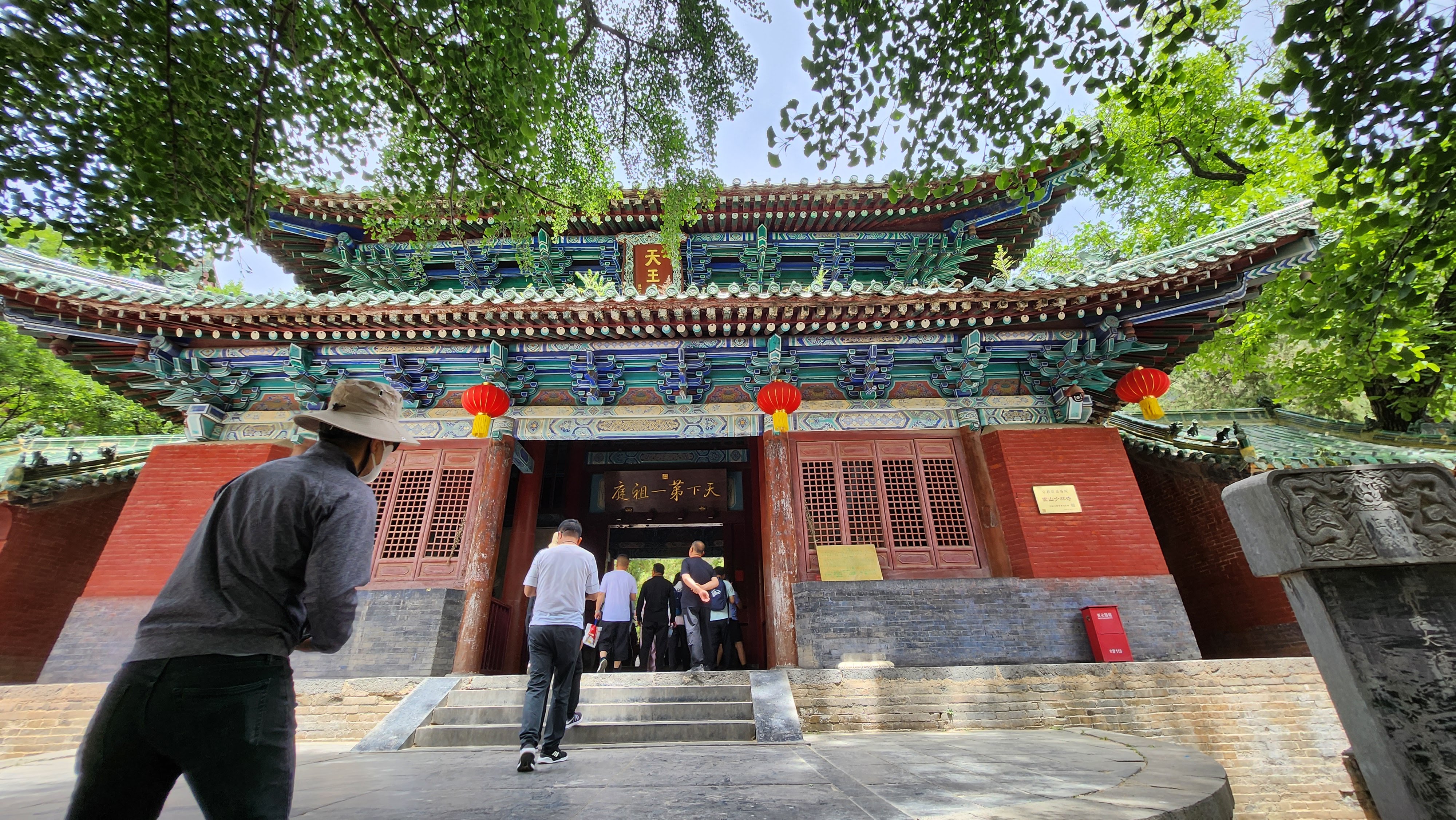 소림사 주차장에 도착한 후 어제와 마찬가지로 꽤나 긴 거리를 걸어 소림사 입구까지 걸어가게 된다. 소림사 사찰에 도착하기 전에 최신식으로 지어진 높다란 문을 하나 지나게 되는데 마치 일본 신사의 문인 "토리이"처럼 보이기도 하지만 전형적인 중국식 모양의 문이다. 그 앞에서 모두 모여 단체 사진을 찍고는 본격적으로 안으로 들어 섰다.